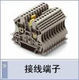 在標(biāo)準(zhǔn)的U型和G型導(dǎo)軌上,組合成各式端子條。在端子上可方便嵌入標(biāo)識,連接橋接件及測試附件。該類端