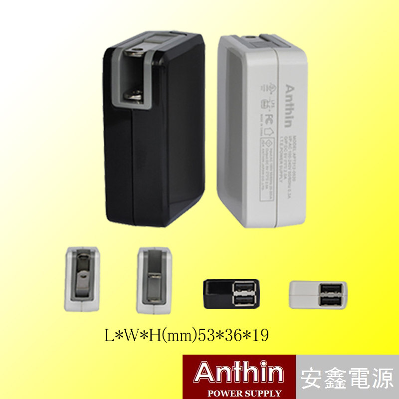 APT312 series (10W 折疊式美日規(guī)充電器) Input Voltage: AC 100-240V 50/60HZ 0.3A Output Voltage: APT312-0520 5V 2A APT312-0520 5V 2.1A 產(chǎn)品尺寸:53*36*19MM 包裝:小白盒 產(chǎn)品認(rèn)證:UL FCC PSE認(rèn)證 產(chǎn)品接口:雙 USB接口 適用產(chǎn)品: 游戲機(jī),音響,手機(jī),PDA,IPAD,IPHONE, IPHONE 5,鋰離子電池,數(shù)位相機(jī),光碟機(jī),路由器,集線器各類視聽產(chǎn)品, 小家電,通訊及IT類產(chǎn)品 歡迎您到廠參觀指導(dǎo),謝謝!