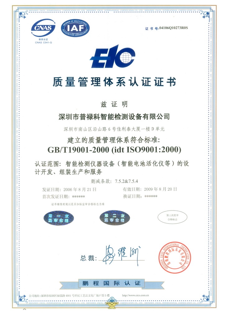 ISO9001質(zhì)量體系認(rèn)證書