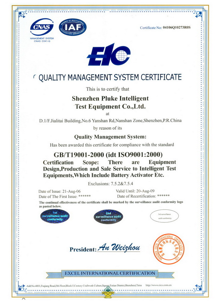 ISO9001QUALITY MANAGEMENT SYSTEM CERTIFICATE