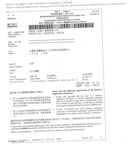 公司注冊(cè)登記證