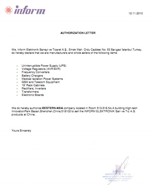 Inform授權(quán)代理證書