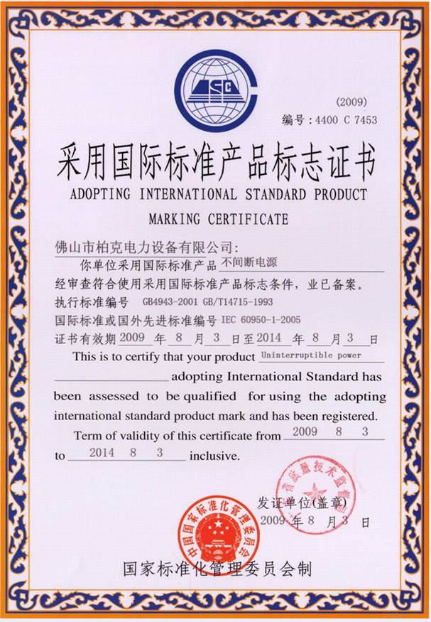 采用國際標(biāo)準(zhǔn)產(chǎn)品標(biāo)志證書