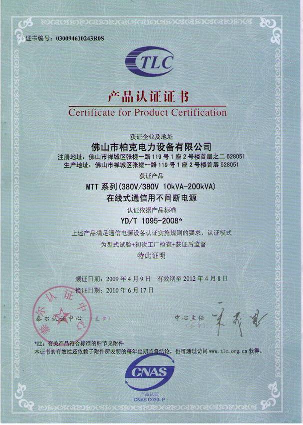 產(chǎn)品認(rèn)證證書