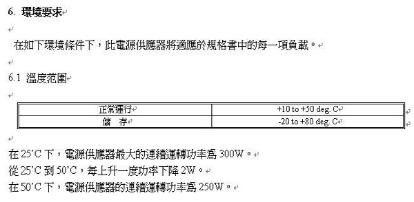 這是一張從某電源品牌的工廠檢測(cè)報(bào)告里截出來(lái)的圖,從圖中我們可以清晰地得到電源的額定功率為250W,最大功率為300W,不過(guò)當(dāng)這款電源到市面上銷售的時(shí)候會(huì)打上300W的額定功率,這種行為雖不規(guī)范,但仍屬合理。我國(guó)的大部地區(qū)都處于溫帶和亞熱帶,氣溫適中,因此廠商將電源的最大功率=額定功率也是有一定道理的。
