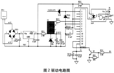 M57962AL是IGBT專用驅(qū)動(dòng)模塊,它采用雙電源驅(qū)動(dòng)結(jié)構(gòu),內(nèi)部集成有2500V高隔離電壓的光耦合器和過(guò)電流保護(hù)電路,以及過(guò)電流保護(hù)輸出信號(hào)端子和與TTL電平相兼容的輸入接口,本文主要應(yīng)用M57962AL來(lái)實(shí)現(xiàn)驅(qū)動(dòng)和過(guò)電流保護(hù)功能,電路見(jiàn)圖2。
