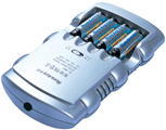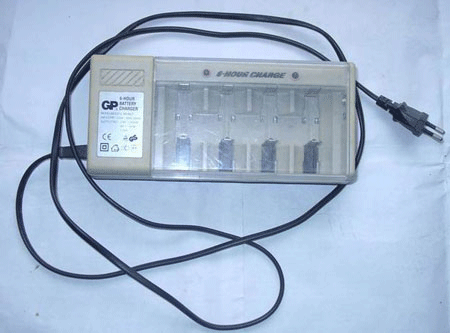 上圖是GP的通用恒流充電器,可充從7號到1號電池,包括9號方電池。充電電流為固定的240MA,可對鎳鎘和鎳氫電池進(jìn)行充電。