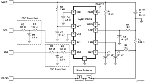 在電池管理中,電池"容量計(jì)"正變得日益流行。在傳統(tǒng)上,通常用以下方法來測量電池容量,即:先測量鋰離子電池的電壓,然后再用存儲在存儲器中的容量查找表來得出有關(guān)可用電池功率的結(jié)果。但由于3G手機(jī)復(fù)雜的功耗特性及鋰離子電池性能隨時間、溫度及負(fù)載條件的變化,上述方法并不實(shí)用。為精確測量剩余電池容量以使處理器能更好地管理手機(jī)功耗,人們采用了具有"阻抗跟蹤"能力、并能測量進(jìn)出電池實(shí)際電量的高性能庫侖計(jì)。這使處理器能有效地部署電池節(jié)省模式、精確確定電池耗盡時間以及當(dāng)需要充電時向終端用戶告警等。圖2即顯示一種集成在電池盒中、并通過I2C通信接口向主處理器發(fā)送參數(shù)的庫倫計(jì)。