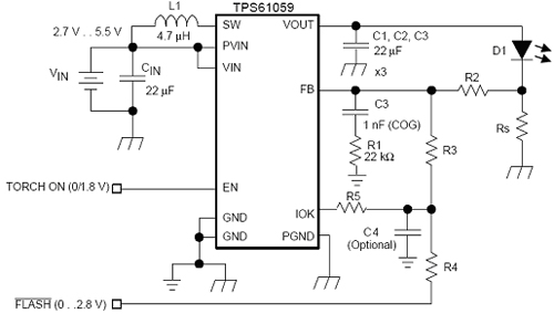 圖3:用于高亮度相機(jī)閃光燈LED的高效率DC/DC升壓塊