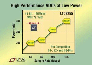 LTC2255與另外5個新的系列成員一起發(fā)布,以10、12和14位分辨率把現(xiàn)有引腳兼容的低功率、高速ADC系列擴(kuò)展到更高的105Msps和125Msps采樣率。每個器件都可提供商用和工業(yè)溫度級應(yīng)用。