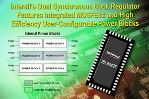 Intersil宣布推出高效率雙輸出同步降壓穩(wěn)壓器 - ISL65426。該器件采用薄型QFN封裝,并為2條同步降壓穩(wěn)壓器通道集成了保護(hù)功能,使其成為為當(dāng)今的小型應(yīng)用供電的理想之選。
