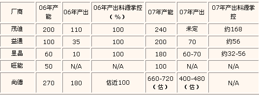 2006、2007年兩岸主要太陽能電池廠產(chǎn)能及料源動態(tài)