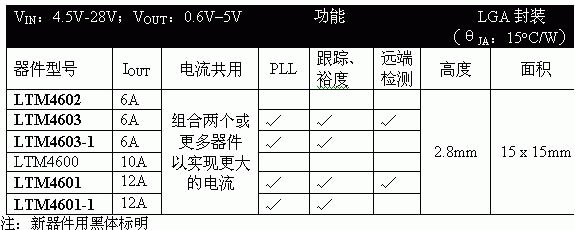 表 1:新的微型模塊系列:完整的 DC/DC 穩(wěn)壓器解決方案