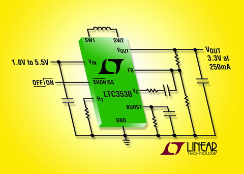 采用 10 引線 DFN 封裝的 LTC3530EDD 有現(xiàn)貨供應,LTC3530EMS 采用 10 引線 MSOP 封裝。以 1,000 片為單位批量購買,這兩種版本器件的每片價格均為 2.75 美元。