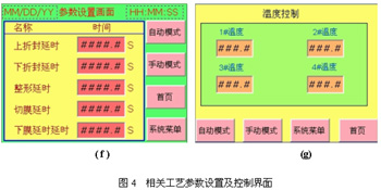 工藝參數(shù)設(shè)置及相關(guān)控制界面等分別如圖4(a)、(b)、(c)、(d)、(e)、(f)、(g)等所示。