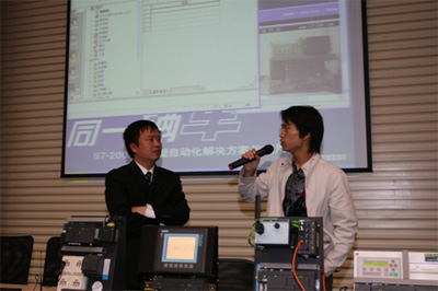 西門子專員將轉(zhuǎn)赴上海、宣講教育合作項目的消息在師生中引起了強烈的反響。同濟大學校園內(nèi)牽起了一陣西門子自動化熱潮。蕓蕓學子以青年人特有的熱情和活力表示他們對西門子公司的尊敬和加入西門子自動化事業(yè)的期望。5月16日,活動現(xiàn)場座無虛席,掌聲不斷。西門子小型PLC產(chǎn)品經(jīng)理宋柏青先生結(jié)合最新S7-200CN做了精彩的demo演示,為師生學習、研究自動化提供了新的視角。西門子教育合作項目專員元娜女士針對項目細節(jié),展示了未來合作的光明前景,引起了師生們的濃厚興趣。