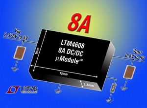 凌力爾特(Linear Technology Corporation)日前推出低電壓 μModuleTM DC/DC 穩(wěn)壓器系列的新成員 LTM4608。這是一款具 DC/DC 控制器、電源開關(guān)、電感器補(bǔ)償電路和輸入/輸出旁路電容器的完整 8A DC/DC μModule 穩(wěn)壓器系統(tǒng)。LTM4608 的工作電源范圍為 2.375V 至 5.5V (最大值為 6V),并可調(diào)節(jié)一個(gè) 0.8V 至 5V 的輸出電壓。完整的電路內(nèi)置于一個(gè)高度僅為 2.8mm 的輕量 (重 1.0 克) 纖巧型 9mm x 15mm LGA 封裝中。緊湊的尺寸、扁平的外形和很輕的重量使得這些器件能夠安裝在系統(tǒng)印刷電路板的背面,從而把頂面上的部分空間解放出來(lái),以用于布設(shè) FPGA、ASIC、存儲(chǔ)器及其他的 IC。對(duì)于那些需要把低電壓輸入電源 (例如:5V、3.3V、2.5V 或單節(jié)鋰離子電池) 轉(zhuǎn)換為一個(gè)較低輸出電壓的系統(tǒng)而言,該系列是一種適用的緊湊、高可靠性 DC/DC 負(fù)載點(diǎn)解決方案,而且不會(huì)犧牲可用空間或性能。