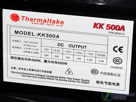 Tt金剛KK500A電源采用純黑色的外觀設(shè)計(jì),更加符合DIY玩家的審美。這款電源采用了主動(dòng)PFC設(shè)計(jì),擁有更高的電源轉(zhuǎn)換效率,更加節(jié)能。此款電源能夠和好的支持雙顯卡平臺(tái)。