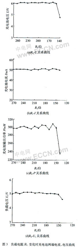 (1)光電池輸出5 V,當(dāng)負(fù)載在155~180Ω變化時(shí),電壓穩(wěn)定度≤0.15 V;