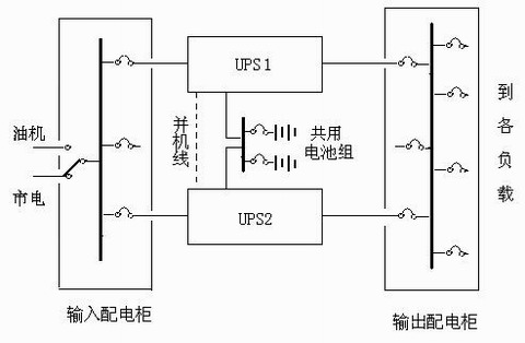 提到雙機并聯(lián)方案,人們往往會認為投資成本至少是單機方案的2倍,其實也未必,因為UPS主機冗余,電池沒必要再跟著冗余,一旦UPS故障,它所配帶的電池再多再好都沒有用了,所以只要能保證當一臺UPS故障后它所配備的電池能夠全部安全地轉(zhuǎn)移給另外一臺UPS使用就行了。雖然電池的數(shù)量沒有冗余,但負載的后備時間將不受任何影響,這就是共享電池組方案。