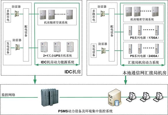 電力供應(yīng)設(shè)備分為兩個部分,第一部分面向IDC機房,主要指UPS設(shè)備;第二部分面向本地通信網(wǎng)業(yè)務(wù)匯接中心機房,主要指通信開關(guān)電源。