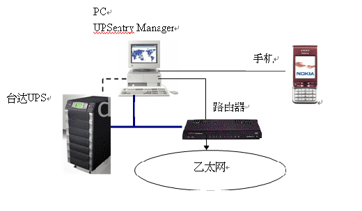 說明: UPS主機有SNMP卡插槽,全部車站采用SNMP卡與現(xiàn)有的網(wǎng)絡進行連接,分配固定的IP,即可通過監(jiān)控中心或IE對UPS的工作狀態(tài),工作信息實現(xiàn)遠程監(jiān)控.