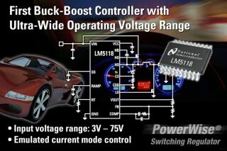 美國國家半導體LM5118開關穩(wěn)壓器具備組建高效率降壓/升壓穩(wěn)壓器的一切必要功能,且只需極少外置元件。降壓/升壓拓撲的優(yōu)點是無論輸入電壓低于還是高于輸出電壓,穩(wěn)壓器都可輸出穩(wěn)定的電壓。因此這款芯片尤其適用于汽車電子系統(tǒng)。