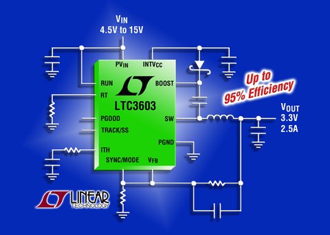 2009年2月2日,凌力爾特公司(Linear Technology Corporation)推出高效率、3MHz同步降壓型穩(wěn)壓器LTC3603,該器件采用恒定頻率、電流模式架構(gòu)。它采用4mmx4mm QFN封裝或耐熱增強(qiáng)型MSOP-16封裝,在輸出電壓低至0.6V時(shí)能提供2.5A的連續(xù)輸出電流。LTC3603在4.5V至15V的輸入電壓范圍內(nèi)工作,非常適用于兩節(jié)鋰離子電池應(yīng)用以及12V固定電壓軌系統(tǒng)。其開(kāi)關(guān)頻率從300kHz至3MHz是用戶(hù)可編程的,從而允許采用纖巧低成本電容器和電感器。