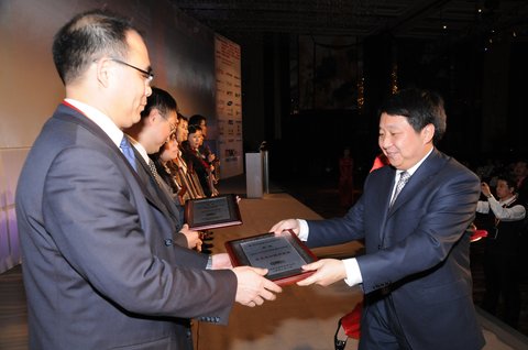 電子信息產(chǎn)業(yè)發(fā)展研究院副院長兼賽迪顧問總裁羅文為科華公司副總經(jīng)理林清民頒獎