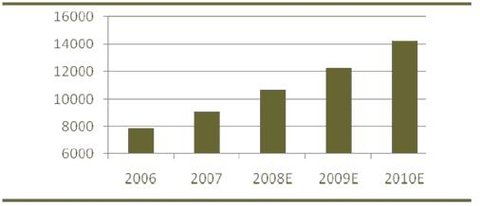 長(zhǎng)期而言,二次電池已開(kāi)始發(fā)生結(jié)構(gòu)性轉(zhuǎn)變,鋰離子電池將逐漸取代鉛酸、鎳氫電池,鋰離子電池中又以安全性最佳、具有大電流、循環(huán)壽命長(zhǎng)的磷酸亞鐵鋰電池最具發(fā)展?jié)摿ΑH羯鲜?5 個(gè)市場(chǎng)全部100%采用磷酸亞鐵鋰電池,預(yù)估2010 年磷酸鋰鐵電池市場(chǎng)規(guī)模達(dá)1,588 億元,2007~2010 年CAGR 達(dá)32%,其中以HEV 市場(chǎng)占比重最大,達(dá)到61%。長(zhǎng)期而言仍將以汽車市場(chǎng)規(guī)模最大,太陽(yáng)能儲(chǔ)能設(shè)備的電池需求也不容小覷?傊,磷酸亞鐵鋰電池市場(chǎng)商機(jī)無(wú)窮,值得期待。