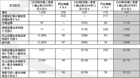 英飛凌2009財(cái)年第二季度的終止運(yùn)營(yíng)業(yè)務(wù)凈虧損為1.08億歐元,合每股虧損(基本與稀釋后)0.12歐元。2009年1月23日,奇夢(mèng)達(dá)股份公司及其全資子公司奇夢(mèng)達(dá)德累斯頓向慕尼黑地方法院提交了破產(chǎn)申請(qǐng)。在此基礎(chǔ)上,英飛凌于第二季度完成了對(duì)奇夢(mèng)達(dá)的分立,并承擔(dān)主要與奇夢(mèng)達(dá)貨幣換算效應(yīng)相關(guān)的1億歐元累計(jì)虧損。此類累計(jì)虧損的確認(rèn)將不會(huì)對(duì)英飛凌的股東權(quán)益產(chǎn)生任何影響。