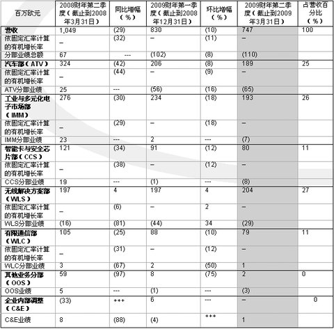 日前,英飛凌科技股份公司(FSE: IFX / OTCQX: IFNNY)公布了截止到2009年3月31日的2009財(cái)年第二季度的財(cái)務(wù)數(shù)據(jù)。