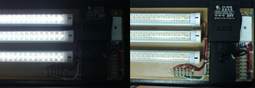 現(xiàn)在這三種調(diào)光裝置都已經(jīng)申請了專利,其中所用到的LED日光燈都是采用熱阻只有45ºC/W的高亮度貼片式LED,并且采用帶有半鋁散熱器的燈管,由于驅(qū)動電源外置,就可以采用無內(nèi)置空間的全散熱片的鋁合金管,從而提高了散熱效率,同時也避免了內(nèi)置電源的熱量而引起的部分LED的光衰,因而降低了LED結(jié)溫,延長了LED壽命,可以保證5萬小時的使用壽命。而且交流電源采用了隔離式開關(guān)電源,完全可以經(jīng)受CE打高壓的考驗,也解除了用戶觸電的可能性。這種日光燈已經(jīng)開始小批量生產(chǎn),以滿足廣大用戶的需要!
