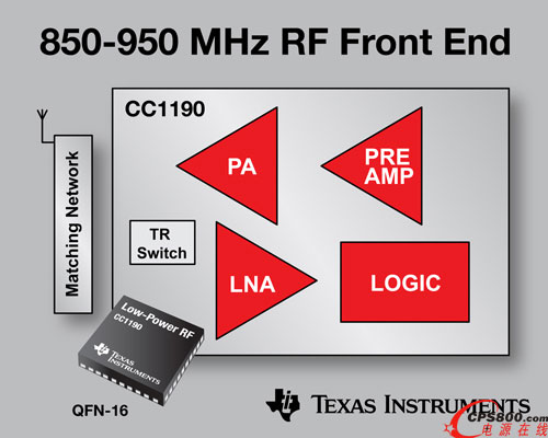 采用符合 ROHS 標準、4 毫米 x 4 毫米 QFN-16 封裝的 CC1190 現已開始供貨,可通過 TI 及其授權分銷商進行訂購。