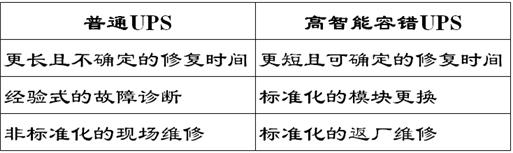 從以上兩點結合可用性公式可以看出,模塊化UPS具有最高的可用性,也就是說其容錯能力最強。具有低成本、高效率、高可靠性,并且能夠快速修復的容錯性UPS必將成為UPS的發(fā)展趨勢。