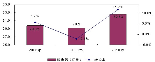 圖1 2008-2010年中國UPS市場銷售額情況