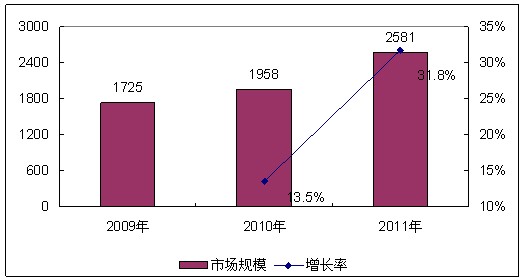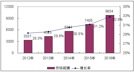 預(yù)計未來幾年我國物聯(lián)網(wǎng)行業(yè)將持續(xù)快速發(fā)展,年均增長率30%左右,到2016年,物聯(lián)網(wǎng)行業(yè)市場規(guī)模達(dá)到9834億元。
