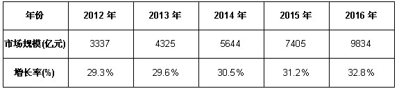 表6 2012-2016年中國物聯(lián)網(wǎng)產(chǎn)業(yè)市場規(guī)模