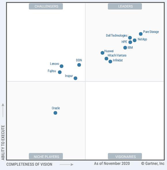 2020年12月9日,中國——致力于在多云環(huán)境內(nèi)提供存儲(chǔ)服務(wù)的全球IT先鋒Pure Storage(NYSE;PSTG)宣布在Gartner 2020年“主存儲(chǔ)陣列魔力象限”(Magic Quadrant for Primary Storage Arrays)報(bào)告中榮登領(lǐng)導(dǎo)者象限。這是Pure Storage第七年在多項(xiàng)Gartner魔力象限報(bào)告中獲得領(lǐng)導(dǎo)者地位。