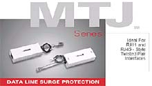 MTJ系列保護器安裝于通訊線路和被保護設(shè)備的I/O接口之間;保護器的接地線必須要和被保護設(shè)備的金屬外殼可靠連接;為了實現(xiàn)完善的保護,數(shù)據(jù)電纜兩端應同時安裝保護器。