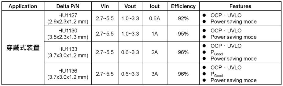 臺(tái)達(dá)模塊電源,以下列舉針對(duì)穿戴裝置的建議產(chǎn)品供您參考:
