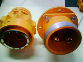 該產(chǎn)品接插件2芯,接觸電流600A,插座與插頭采用螺紋方式連接。